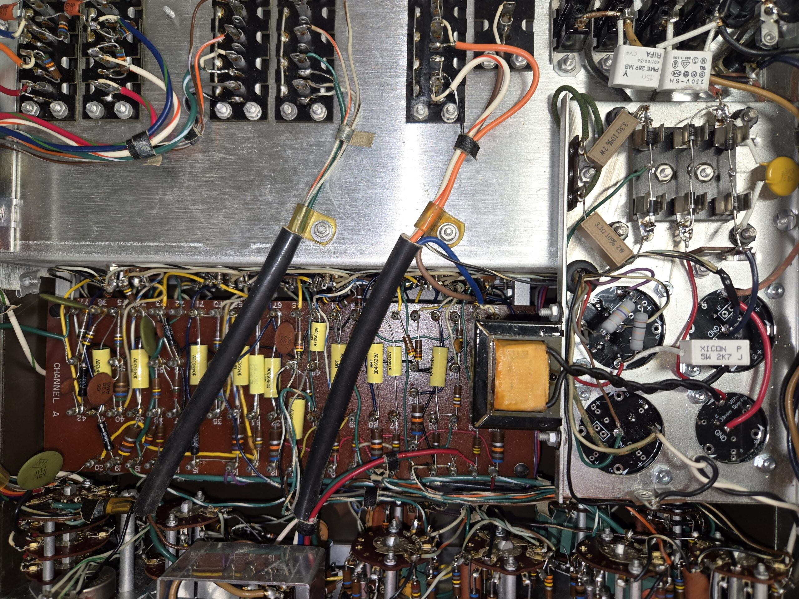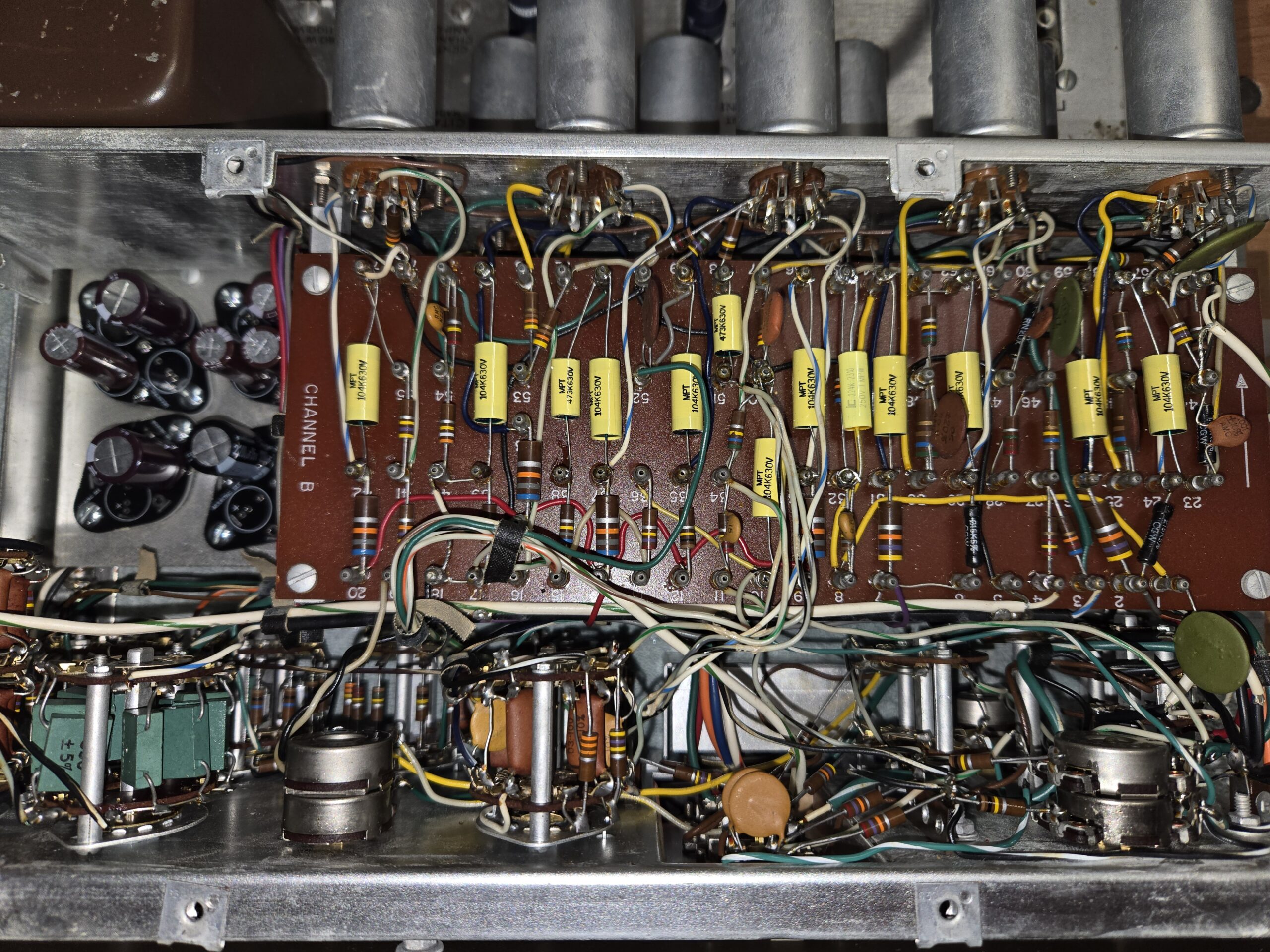 All capacitors known to be prone to failure were replaced. Aging capacitors are one of the most common causes of noise, drift, and instability in vintage tube equipment, so this step is critical for both performance and reliability. - Power Supply Rebuild
